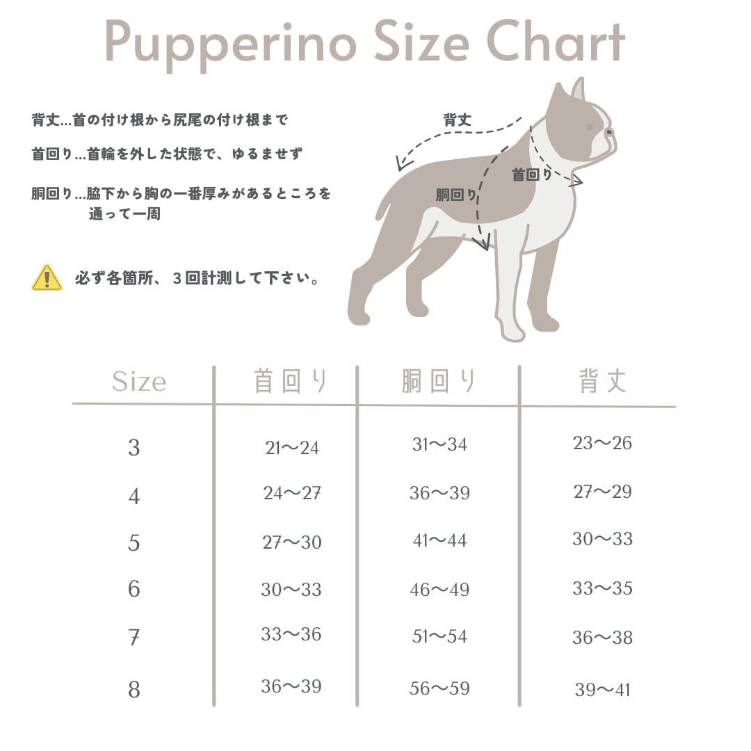 事前裁断の準備があるため、**お申し込み後のサイズ変更、および完成後のお直しは承れません。**サイズ表をよくご確認の上、最適なサイズをお選びください。